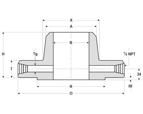 ASME B16.36 Class 300 Orifice Weld Neck RF Flanges Dimensions and Technical Drawings DOWNLOAD ASME B16.36 CLASS 300 ORIFICE WELD NECK RF FLANGES DIMENSIONS AND TECHNICAL DRAWINGS PDF Get Complete details of ANSI/ASME B16.36 Standard Flange 300# B16.36 Flanges Dimensions B16.36 Dimensions in MM NPS HUB DIA DIA RF OUT SIDE DIA MIN THK FLG HGT FLG HUB DIA DIA OF TAB A R O T H X Tg 1 33.4 50.8 125 36.6 81 54 6.4 1½ 48.3 73.0 155 36.6 84 70 6.4 2 60.3 92.1 165 36.6 84 84 6.4 2½ 73.0 104.8 190 36.6 87 100 6.4 3 88.9 127.0 210 36.6 87 117 9.5 4 114.3 157.2 255 36.6 90 146 12.7 6 168.3 215.9 320 36.6 98 206 12.7 8 219.1 269.9 380 39.7 110 260 12.7 10 273.0 323.8 445 46.1 116 321 12.7 12 323.8 381.0 520 49.3 129 375 12.7 14 355.6 412.8 585 52.4 141 425 12.7 16 406.4 469.9 650 55.6 144 483 12.7 18 457.0 533.4 710 58.8 157 533 12.7 20 508.0 584.2 775 62.0 160 587 12.7 24 610.0 692.2 915 68.3 167 702 12.7 NPS BOLT CIRCLE NO OF BOLTS DIA OF HOLES DIA STUD BOLTS STUD BOLT LENGTH 1 88.9 4 11/16 5/8 125 1½ 114.3 4 13/16 3/4 135 2 127.0 8 11/16 5/8 125 2½ 149.2 8 13/16 3/4 135 3 168.3 8 13/16 3/4 135 4 200.0 8 13/16 3/4 135 6 269.9 12 7/8 3/4 135 8 330.2 12 1 7/8 145 10 387.4 16 1.1/8 1 165 12 450.8 16 1¼ 1.1/8 180 14 514.4 20 1¼ 1.1/8 185 16 571.5 20 1.3/8 1¼ 195 18 628.6 24 1.3/8 1¼ 205 20 685.8 24 1.3/8 1¼ 215 24 812.8 24 1.5/8 1½ 240 General Note: Height of Raised Face…